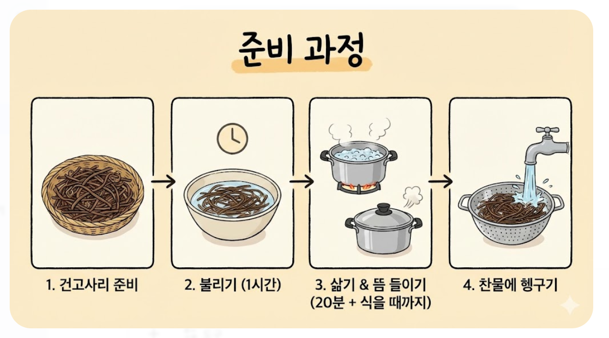 첫 번째: 건고사리, 삶는 것보다 '뜸 들이기'가 핵심입니다