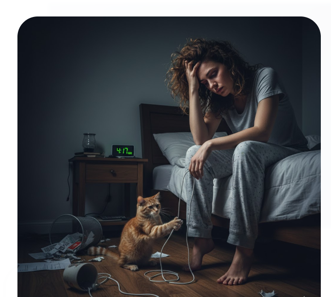 고양이는 본래 야행성(정확히는 박명박묘성) 동물이기에 집사가 잠든 새벽에 활동량이 급증합니다. 새벽 2~3시에 집안을 질주하는 소위 '우다다' 소음이나 배고픔 혹은 심심함을 호소하는 울음소리는 집사의 숙면을 심각하게 방해할 수 있습니다.