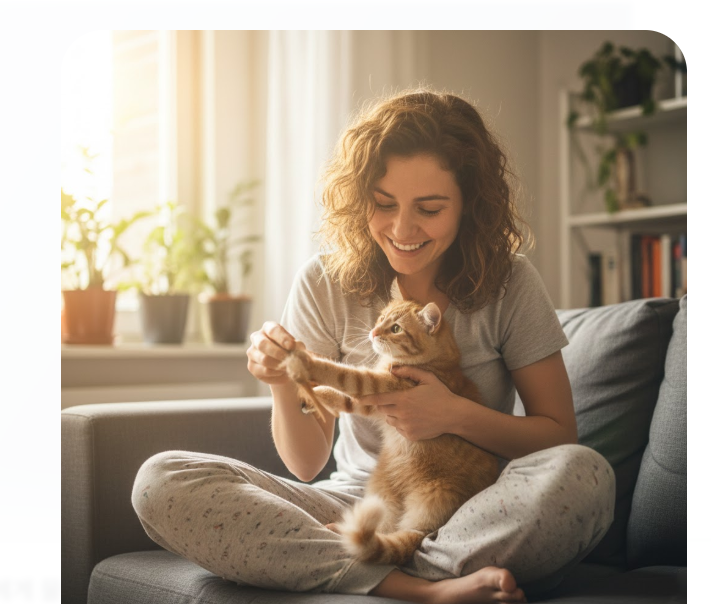 이를 완화하기 위해서는 자기 직전 최소 30분 이상 강도 높은 사냥 놀이를 통해 고양이의 에너지를 완전히 소진시켜야 합니다. 고양이는 사냥놀이를 단순한 '유희'가 아닌 '생존 본능'으로 여기기 때문에 이를 소홀히 하면 가구 파괴나 공격성 같은 문제 행동으로 이어질 수 있습니다. 또한 매일 1~2회 화장실 청소(맛동산과 감자 캐기), 정기적인 발톱 깎기, 양치질, 빗질 등 세심한 관리가 필요합니다. 특히 장기간 집을 비우게 될 경우 고양이는 영역 동물이라 호텔링보다는 방문 탁묘가 권장되는데 이 또한 비용과 신뢰의 문제입니다. 최근에는 인덕션 버튼을 고양이가 눌러 발생하는 화재 사고도 빈번하므로 외출 시에는 반드시 가전제품의 전원을 차단하는 등 세심한 주의가 요구됩니다.