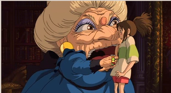터널을 지나 들어간 마을에는 사람은 없고, 산더미처럼 쌓인 음식이 차려진 식당만 남아 있습니다. 치히로의 부모는 부모는 유혹을 이기지 못하고 음식을 게걸스럽게 먹다 돼지로 변하게 되며 치히로는 혼자 남아 낯선 세계에 던져집니다. 이후 치히로는 마녀 유바바가 운영하는 온천장(油屋, 아부라야)에서 일하게 됩니다. 유바바는 상대의 이름을 빼앗아 지배하는 존재이며, 치히로는 여기에서 ‘치히로(千尋)’에서 ‘센(千)’이라는 이름으로 불리며 일하게 됩니다. 영화에서 이름을 빼앗긴다는 것은 곧 정체성의 상실을 의미하는 것입니다. 치히로는 정체성을 상실한 것입니다. 그러나 치히로는 이곳에서 새로운 인간관계를 형성하며 점차 두려움을 이겨내고, 자신의 이름과 자아를 되찾는 여정을 시작합니다.
