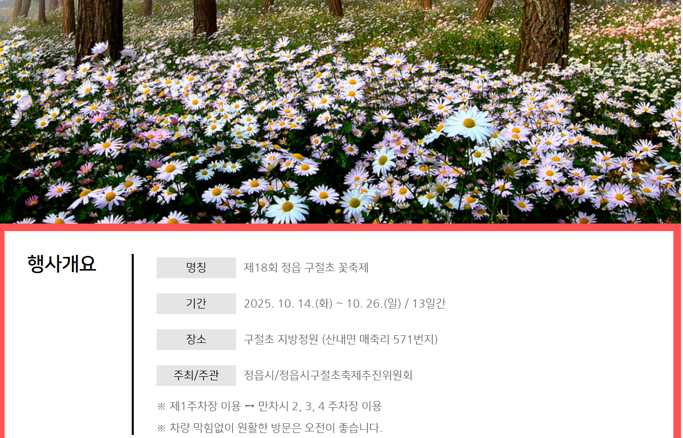 정읍 구절초 축제 관람 가이드 한눈에 보기