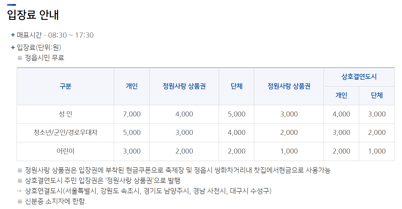 입장료 성인 7,000원 (상품권 4,000원 포함)