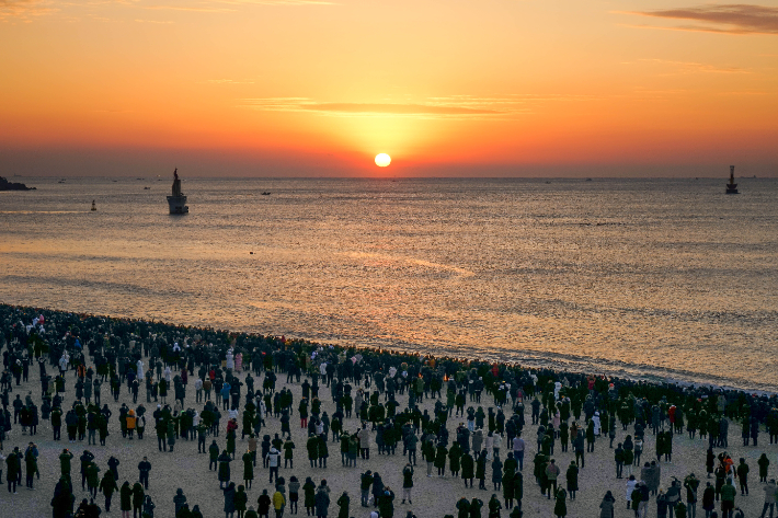 도시와 바다가 동시에 깨어나는 해운대 일출
