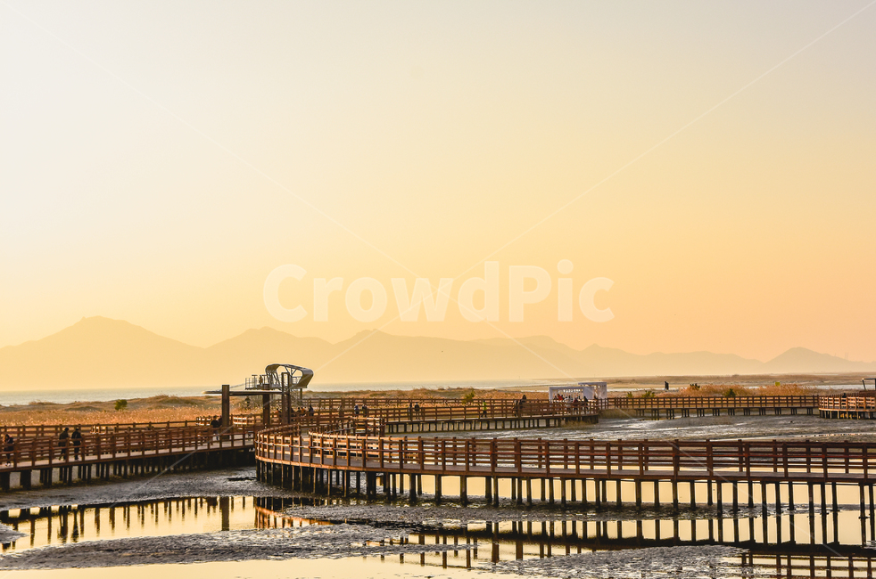다대포 해수욕장은 서부산에 위치한 해변으로, 썰물 때 드러나는 넓은 갯벌이 특징입니다. 이로 인해 일출 시간에는 물웅덩이에 하늘과 태양이 비치는 반영 풍경을 감상할 수 있습니다.