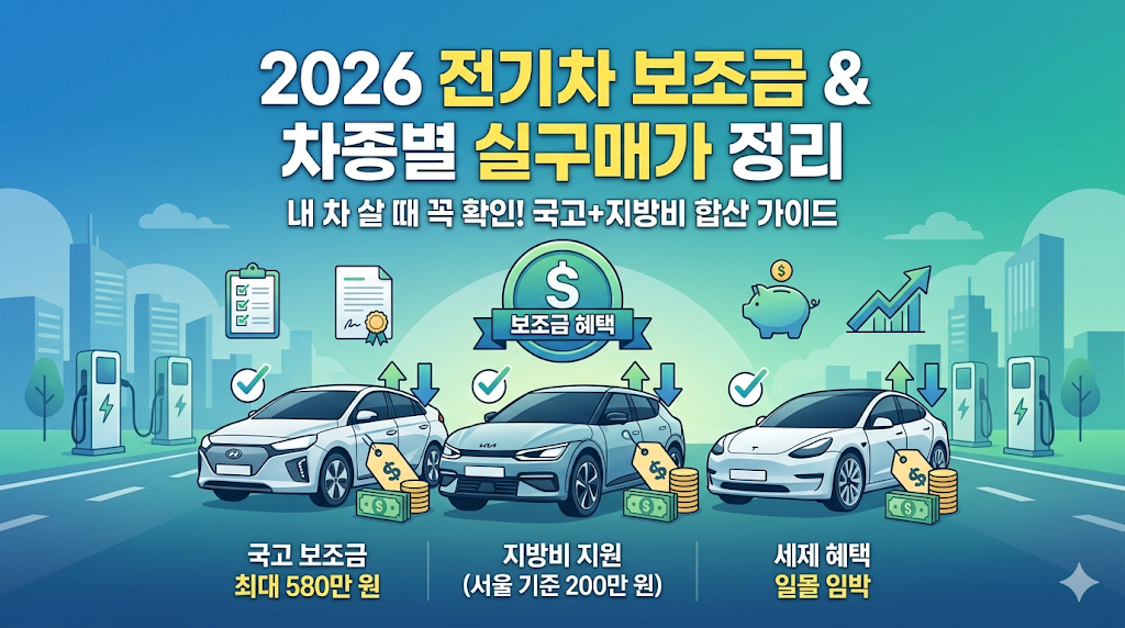 2026년 개편된 전기차 보조금 지침을 바탕으로 현대차, 기아, 테슬라 등 주요 차종의 국고 및 지방비 합산 실구매가를 정리해 드립니다. 올해 말 종료 예정인 세제 혜택과 내연기관 전환 지원금 등 구매 직전 반드시 확인해야 할 핵심 정보를 짚어보고 확인하겠습니다.