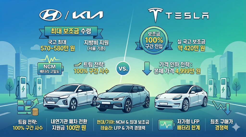 주요 차종별 실구매가 비교: 현대차·기아와 테슬라의 전략