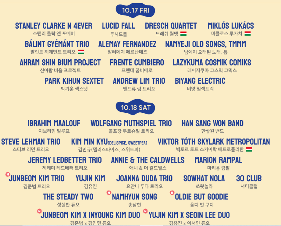 매년 특정 국가를 선정해 집중 조명하는 ‘국가별 포커스 프로그램’을 운영합니다. 2025년에는 헝가리가 선정되어, 헝가리 대표 재즈 뮤지션과 문화를 만날 수 있을 예정입니다.
